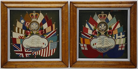 Pair of Mid-19th Century British Sailor’s Woolworks “Flags of Nations”
