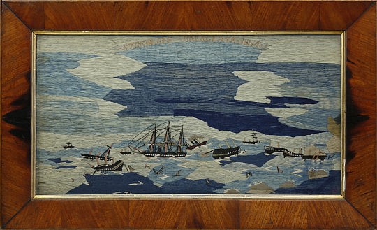 Rare 19th Century British Sailor’s Woolwork “Rescue Attempt Ship Stuck on an Iceberg”