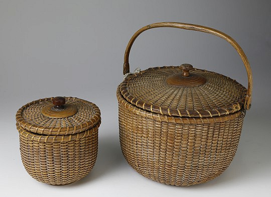 19th Century Round Covered Nantucket Baskets