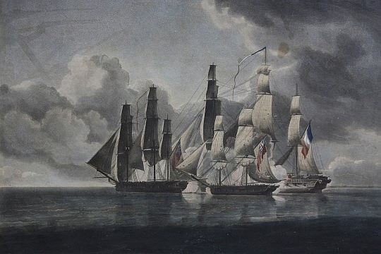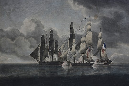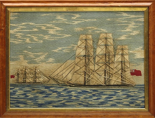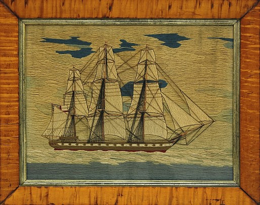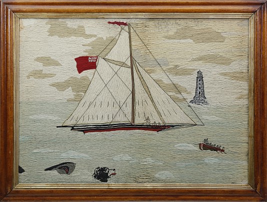 19th Century British Sailor’s Woolwork “Sailing Sloop Gautier – Shark Attack”