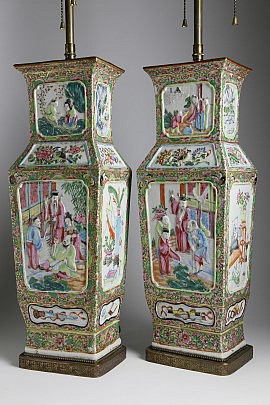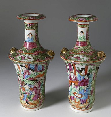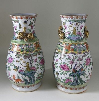 Pair of Famille Rose Chinese Export Porcelain Vases