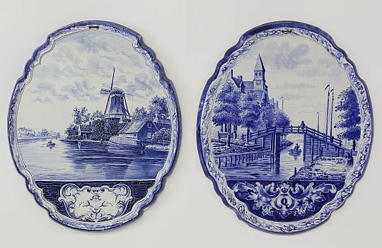 Near Pair of Dutch Delft Blue and White Wall Plaques