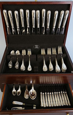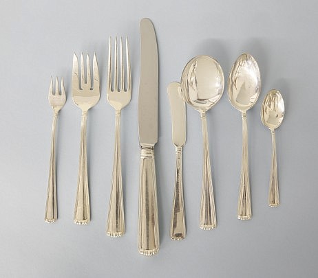 Cartier Sterling Silver Flatware Service in the Embassy Scroll Pattern