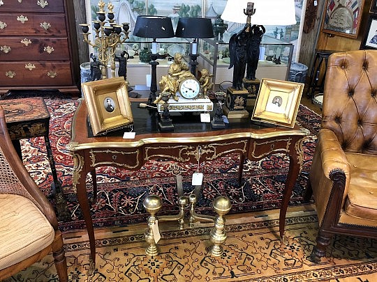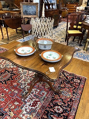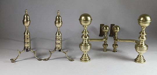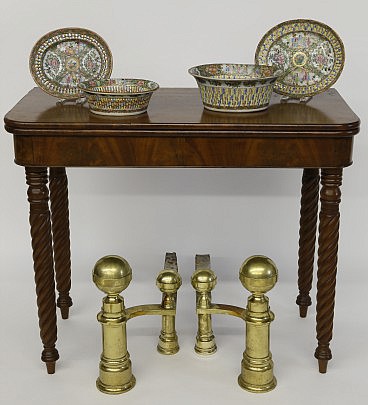 Chinese Export Reticulated Baskets, American Classical Card Table & Boston Andirons