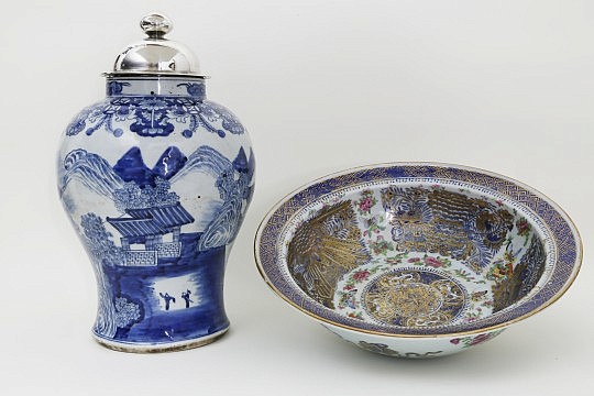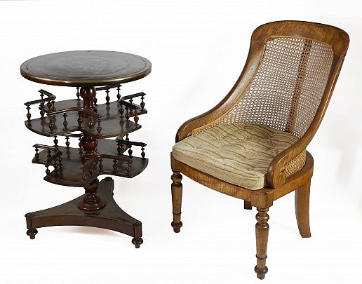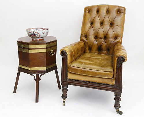 Regency Library Chair, George III Cellaret and Chinese Export Famille Rose Bowl