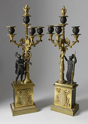 Pair of Deuxiéme Empire Patinated and Gilt-Bronze Four-Light Candelabra