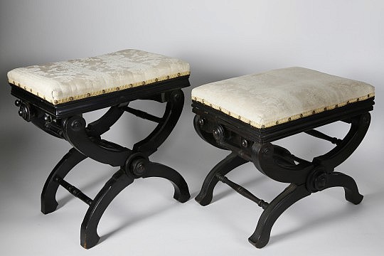 Near Pair of Ebonized Piano Stools
