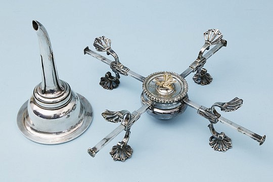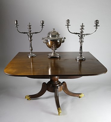 Silver Plated Candelabra, Regency Silver Plated Hot Water Urn and Mahogany Drop-Leaf Table