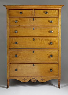 New England Federal Inlaid Tiger Maple and Cherrywood Tall Chest of Drawers