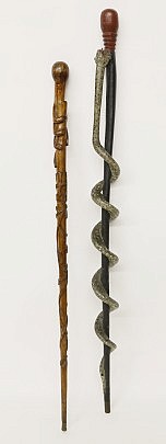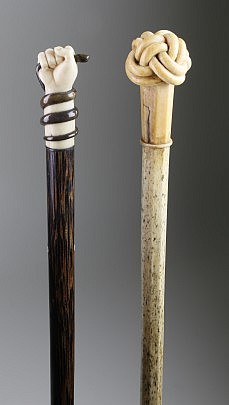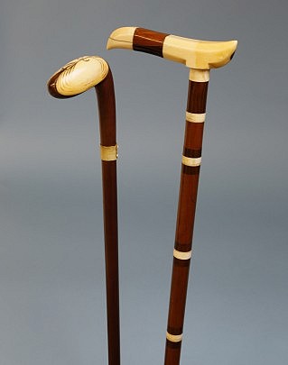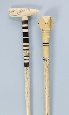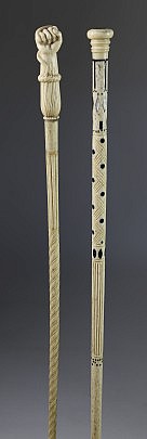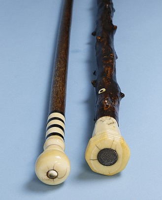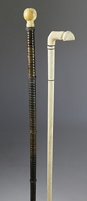 Lot of Two Whaleman Made Whale Ivory and Wood Canes, circa 1850-1870