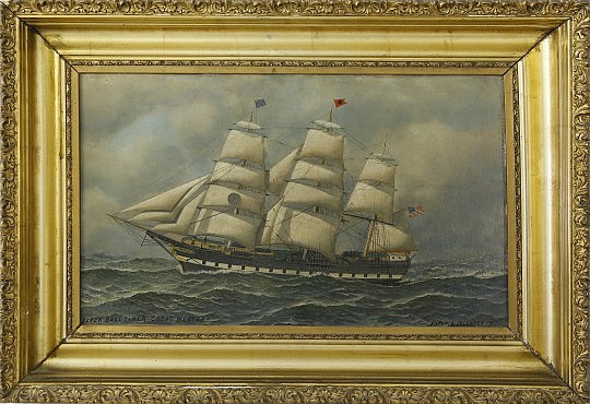 China Trade Oil on Canvas Ship’s Portrait “Bark Stonewall Jackson”