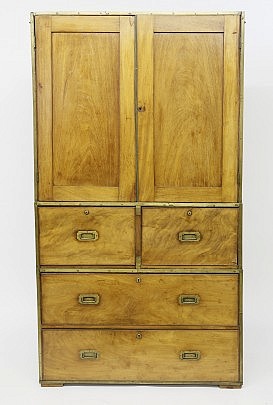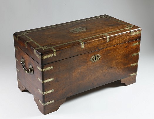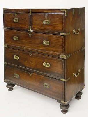 Anglo-Indian Brass-Mounted Exotic Wood Campaign Chest of Drawers