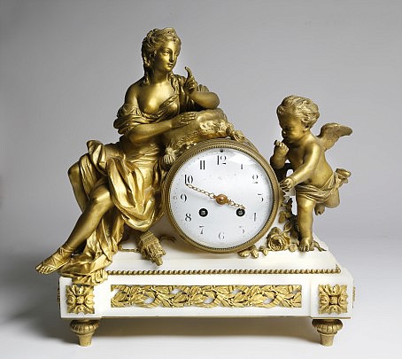 Louis XVI Style Gilt-Bronze and White Marble Mantel Clock