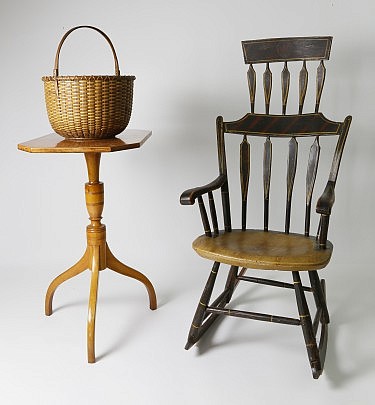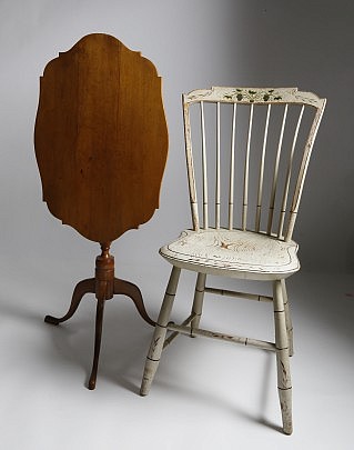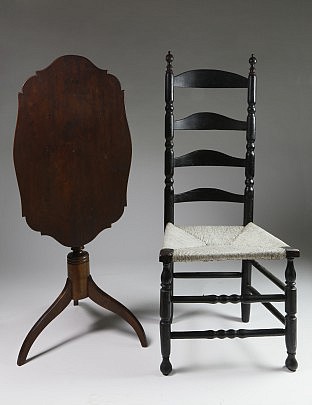 Nantucket Late Federal Mahogany Candlestand & Nantucket Black Painted Ladderback Side Chair