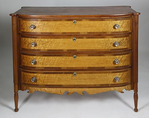Federal Cherry and Bird’s Eye Maple Bowfront Chest of Drawers