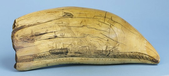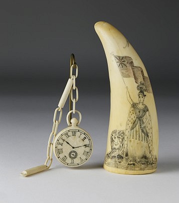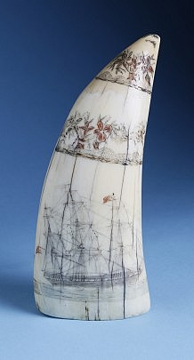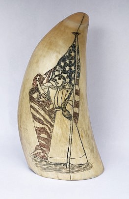 American Patriotic Whaleman Scrimshawed and Polychrome Sperm Whale Tooth