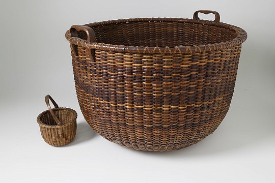 Rare Miniature Nantucket Basket and Nantucket Rattan Woven Hanging Work Basket