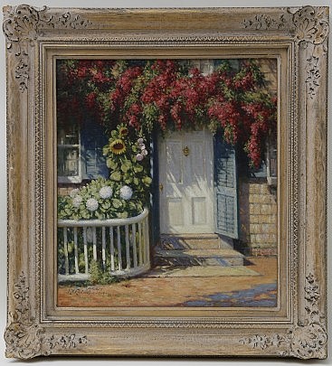 Lincoln Ceely Oil on Door Panel “Elihu Coleman House, Hawthorne Lane, Nantucket”