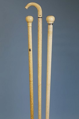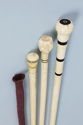 Group of Three Whaleman Made Whale Ivory and Whalebone Walking Sticks, circa 1860