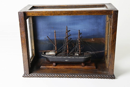 19th Century British Sailor’s Woolwork “H.M.S. Harrier” in Full Sail