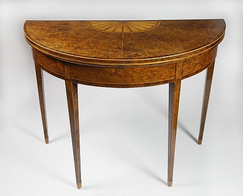 English Hepplewhite Burlwood Inlaid Demilune Games Table