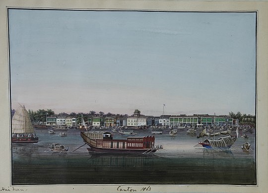 Four Exceptional Youqua, Chinese Export Watercolors on Paper “Shanghai, Canton, Macao and Amoy”