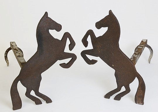 Pair of Cut Sheet Metal Horse Silhouette Andirons