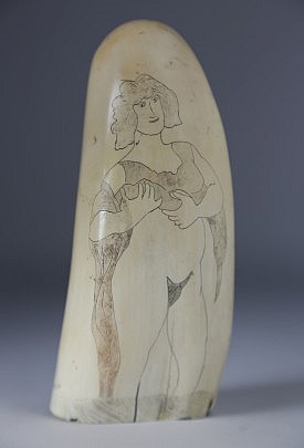 Polychrome Scrimshaw Sperm Whale Tooth Depicting Lady Liberty, circa 1870