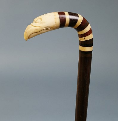Whaleman Carved Whale Ivory and Tropical Wood Carved Eagle Head Cane