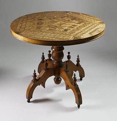 Arts & Crafts Oak and Parquetry Center Table