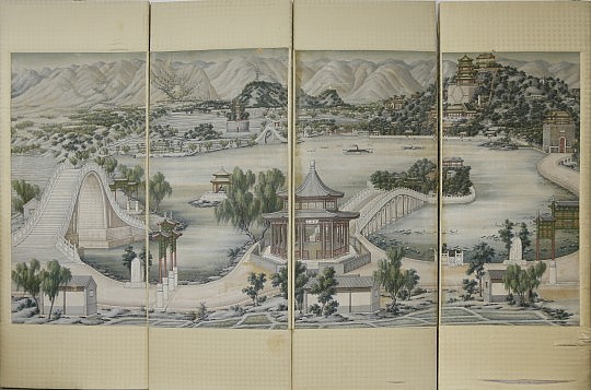 Chinese Four Panel Watercolor on Paper Screen of the Summer Palace – Beijing