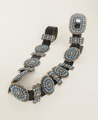 Signed Victor Moses Begay (Active 1950-1980) Sterling Silver and Turquoise Concho Belt