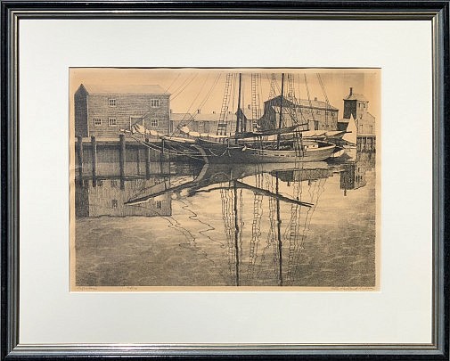 Ruth Haviland Sutton Black and White Etching “Gorham’s Court, Nantucket”