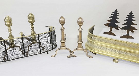 Group of 18th and 19th Century Andirons and Fireplace Fenders