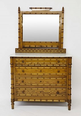 19th Century English Carved Faux Bamboo Mirrored Dresser