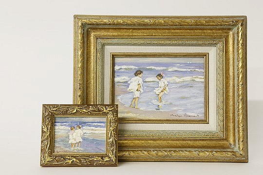 Two Marilyn Guerinot Oil on Canvas’ “Two Children Playing in the Waves” and “Children by the Seashore”