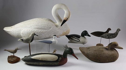 Collection of Shorebirds, Duck Decoys and Swan Carvings