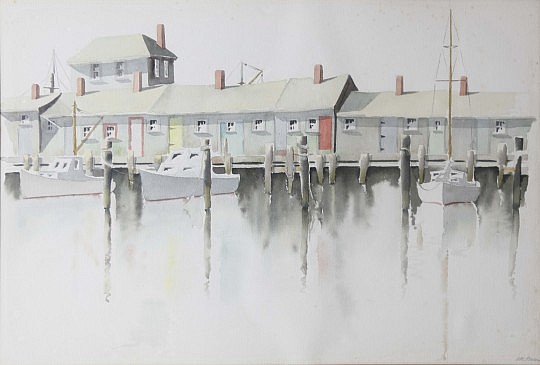 Scarce Doris and Richard Beer Watercolor on Paper “Straight Wharf”