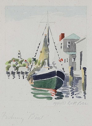 Doris and Richard Beer Miniature Nantucket Watercolor “Fishing Boat”