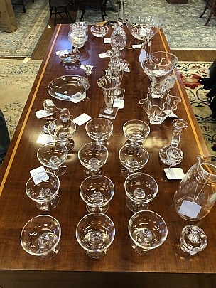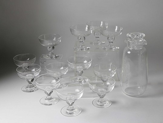Signed Steuben Cocktail Shaker and Champagne Glasses