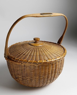 Rare Arthur D. Williams (1867-1940) Round Covered Nantucket Basket