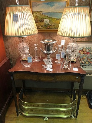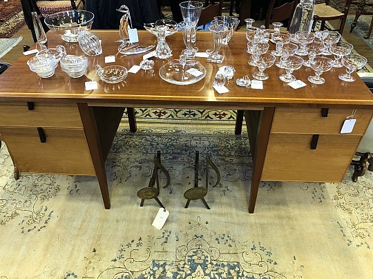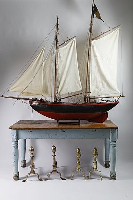 Vintage Pond Model, Kitchen Work Table, Period Brass Fireplace Andirons