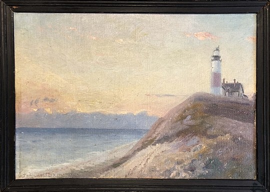 John Franklin Hawkins Oil on Canvas “Luminous Sunset at Sankaty Light, Nantucket”
