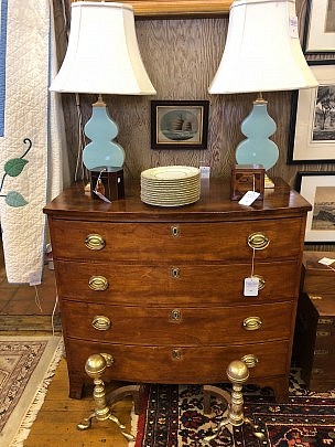 Late 18th Century American Country Chippendale Mahogany Bowfront Chest of Drawers