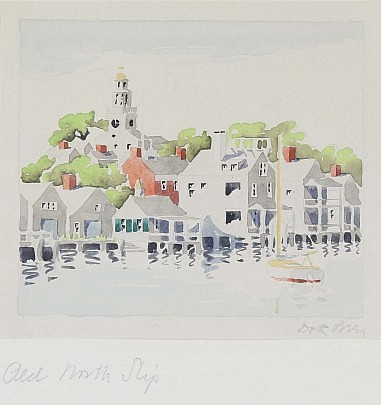 Doris and Richard Beer Miniature Nantucket Watercolor “Old North Slip”