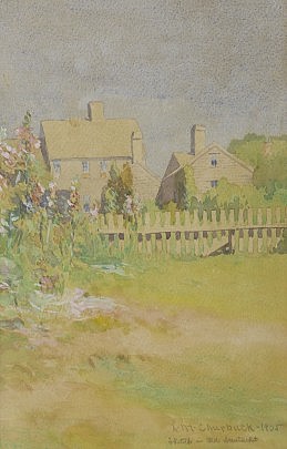 Leander M. Churbuck Nantucket Watercolor on Paper “Backyard Hollyhock”