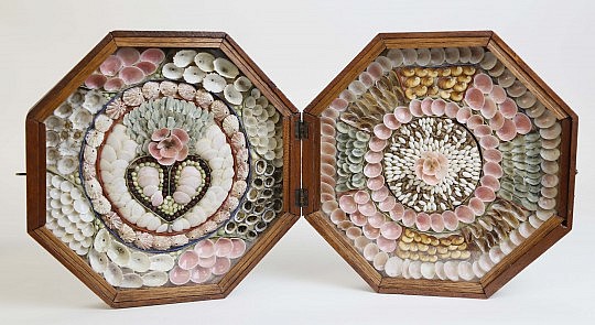19th Century Double Sailor’s Valentine “Forget Me Not” and Heart Motif