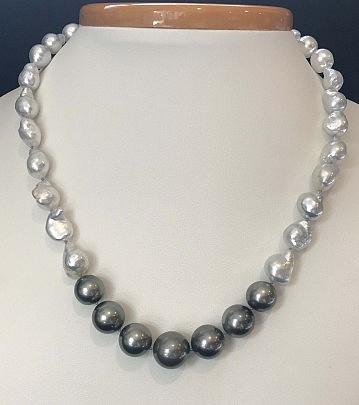 9mm-14mm White South Sea Baroque and Tahitian Pearl Necklace