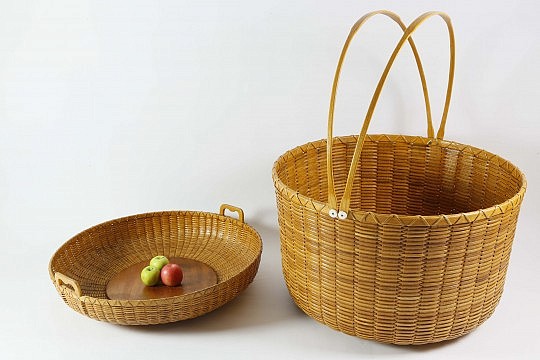 José Formoso Reyes Oval Friendship Basket with Ebony Top and Charlie Sayle Carved Whale