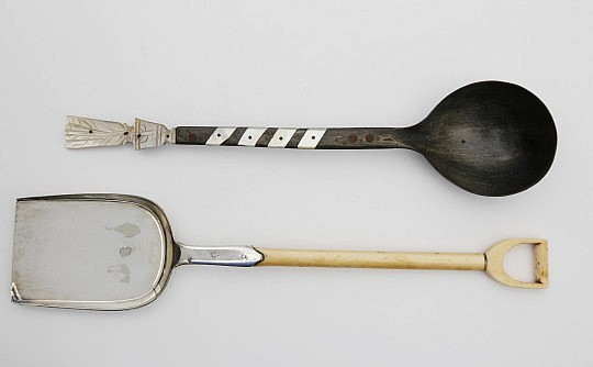 Whale Ivory Serving Shovel of Plated Sheffield Silver and Carved Horn Spoon